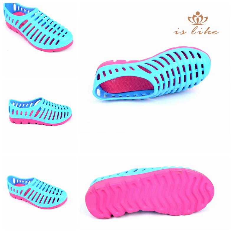 订单 时尚新品宜思莱克i高弹性女鞋 双色洞洞鞋 花园鞋